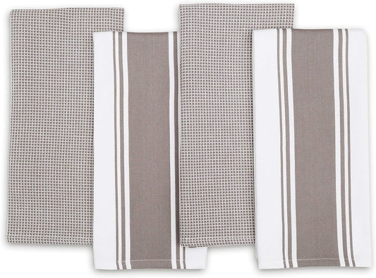 Kitchen Towels|2 Stripe + 2 Waffle Cotton Dish Towels for Drying Dishes|28X20 Inch Kitchen Hand Towels,Tea Towels,Dish Towels for Kitchen|Quick Drying Absorbent Fall Kitchen Towels|Beige